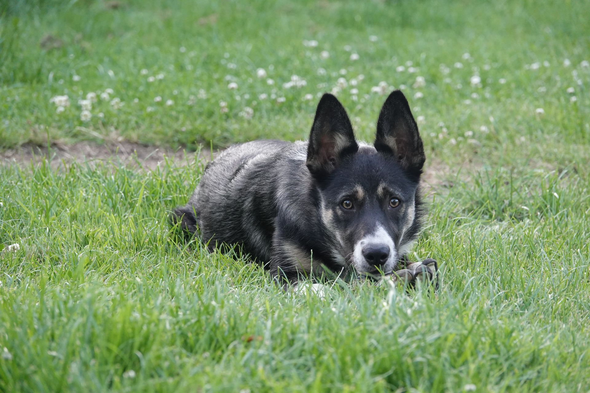 Een heerlijke onbevangen pup, vrolijk en ondernemend. Ze mag rustig verder groeien. Sinds kort traint ze bij de schapen. We zijn onder de indruk van haar rustige manier van werken!